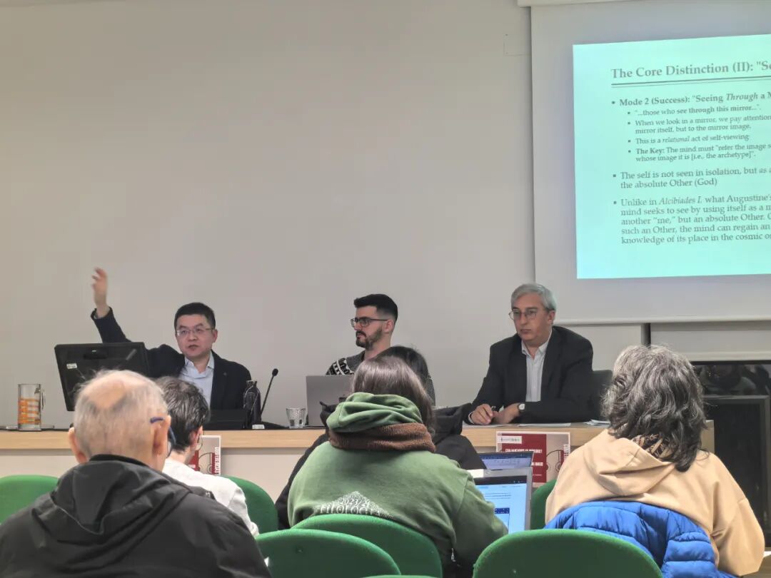 El profesor Wu Tianyue partió de las discusiones de filósofos griegos como Platón y Aristóteles para explicar sistemáticamente cómo el «espejo» ha servido en la historia del pensamiento occidental como metáfora cognitiva para explorar las posibilidades y límites de la autocomprensión. Al mismo tiempo, contrastó esta tradición occidental con conceptos de la cultura china como «tomar a la persona como espejo» y «tomar la historia como espejo», presentando las preocupaciones similares y los enfoques diferentes de diversas civilizaciones sobre la cuestión de «reflexionar sobre uno mismo».